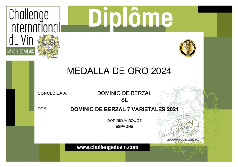 Domino de Berzal Selección Privada 2014 obtiene una medalla de bronce en 2018 y el 7 Varietales de 2017 alcanza una de plata en 2021. En 2022, el Dominio de Berzal 2019 es premiado con una medalla de plata y en 2023, este mismo vino en su añada de 2020 se hizo con una medalla de oro.